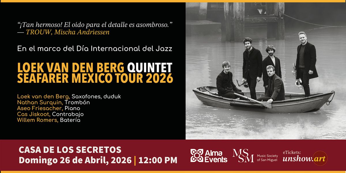 Vive una experiencia única con el Loek van den Berg Quintet en su Seafarer Mexico Tour 2026. Un concierto lleno de sensibilidad, improvisación y composiciones envolventes que te llevarán a un viaje musical inolvidable.