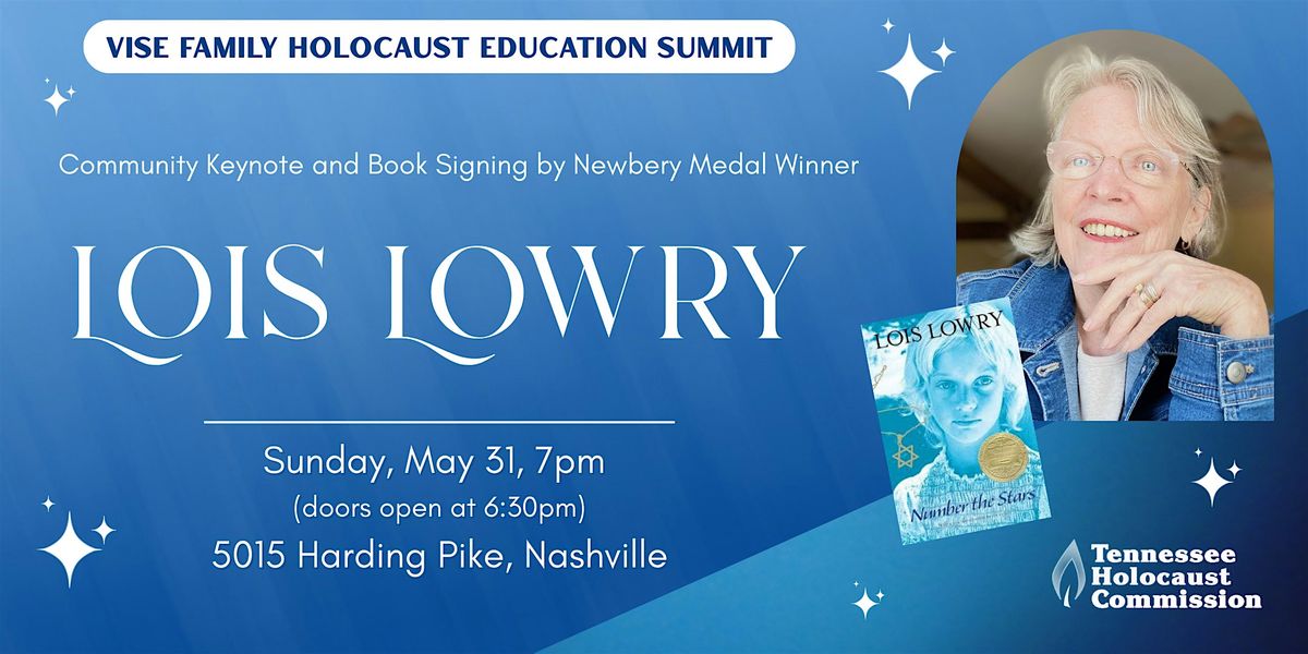 On Sunday, May 31, the Tennessee Holocaust Commission will host a keynote address with internationally recognized literary author, Lois Lowry. The evening address will focus on the inspiration behind Ms. Lowry’s award-winning novel, Number the Stars. This classic Young Adult novel continues to introduce scores of students to the Holocaust every year through the unforgettable characters of Annemarie and Ellen, the Danish resistance, and the importance of individual moral choice. Please join us as we hear firsthand the people and places that inspired the novel that is a consistent cornerstone for Middle School literature across Tennessee.