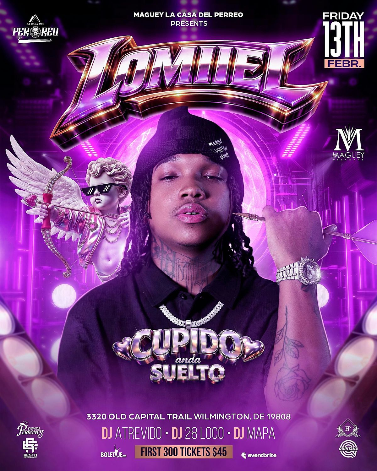 Get ready for an unforgettable night as Lomiiel takes the stage at Maguey! This in-person event is all about good vibes, great tunes, and that special “Cupido” twist. Bring your crew, feel the rhythm, and let's make some memories together. Don’t miss out on this epic live show – it’s gonna be lit!