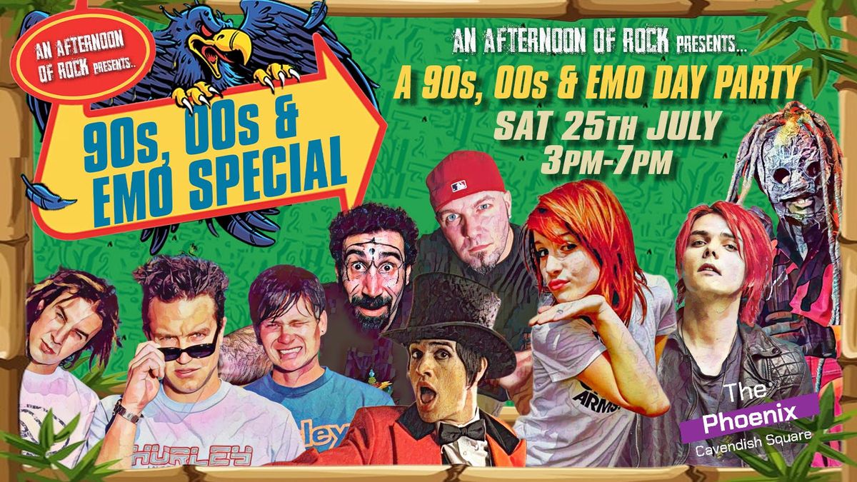 An Afternoon of Rock has been selling out events in London, Sheffield, Manchester, Leeds, Birmingham and around the UK for over a year now, but with so much amazing rock tracks to play, we've been neglecting you emo. pop-punk and nu-metal fans, so we're throwing a 90s, 00s & Emo only specialAs much as we love Motley Crue & Guns N Roses, this event will focus solely on the pop-punk, emo, nu-metal, grunge and rock hits from the 90s & 00s.