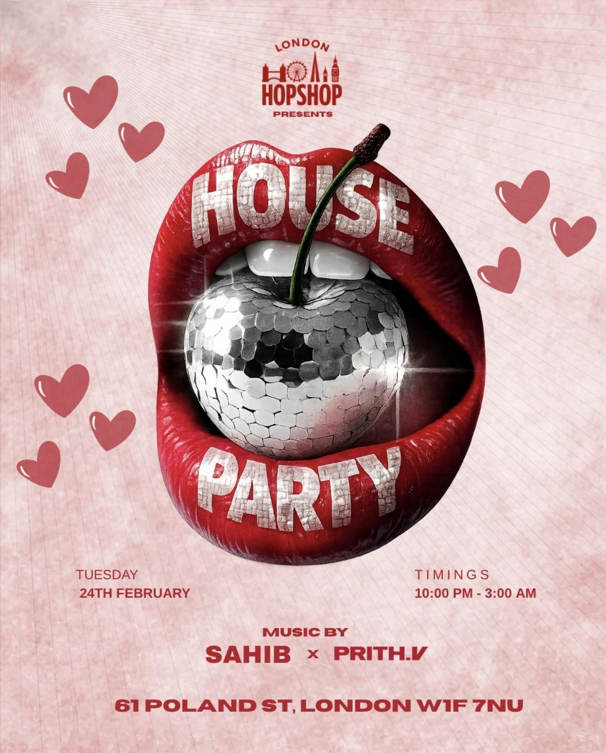 HOUSE PARTY — London Hopshop’s Signature ExperienceStep into an elevated night at House Party, London Hopshop’s signature event, where music, energy, and exclusivity come together for a premium nightlife experience. Designed for London’s stylish party crowd, this VIP edition delivers an intimate yet high-energy atmosphere, bringing together house music, refined vibes, and unforgettable late-night moments.