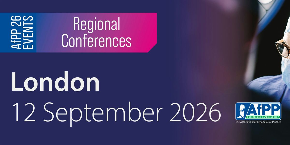 The AfPP Regional Conference in London on Saturday 14 September 2026 brings high-quality, accessible education directly to perioperative teams, offering evidence-based sessions aligned with national standards, specialist exhibitors, and opportunities to build connections with peers. Delegates can earn 5 CPD hours.