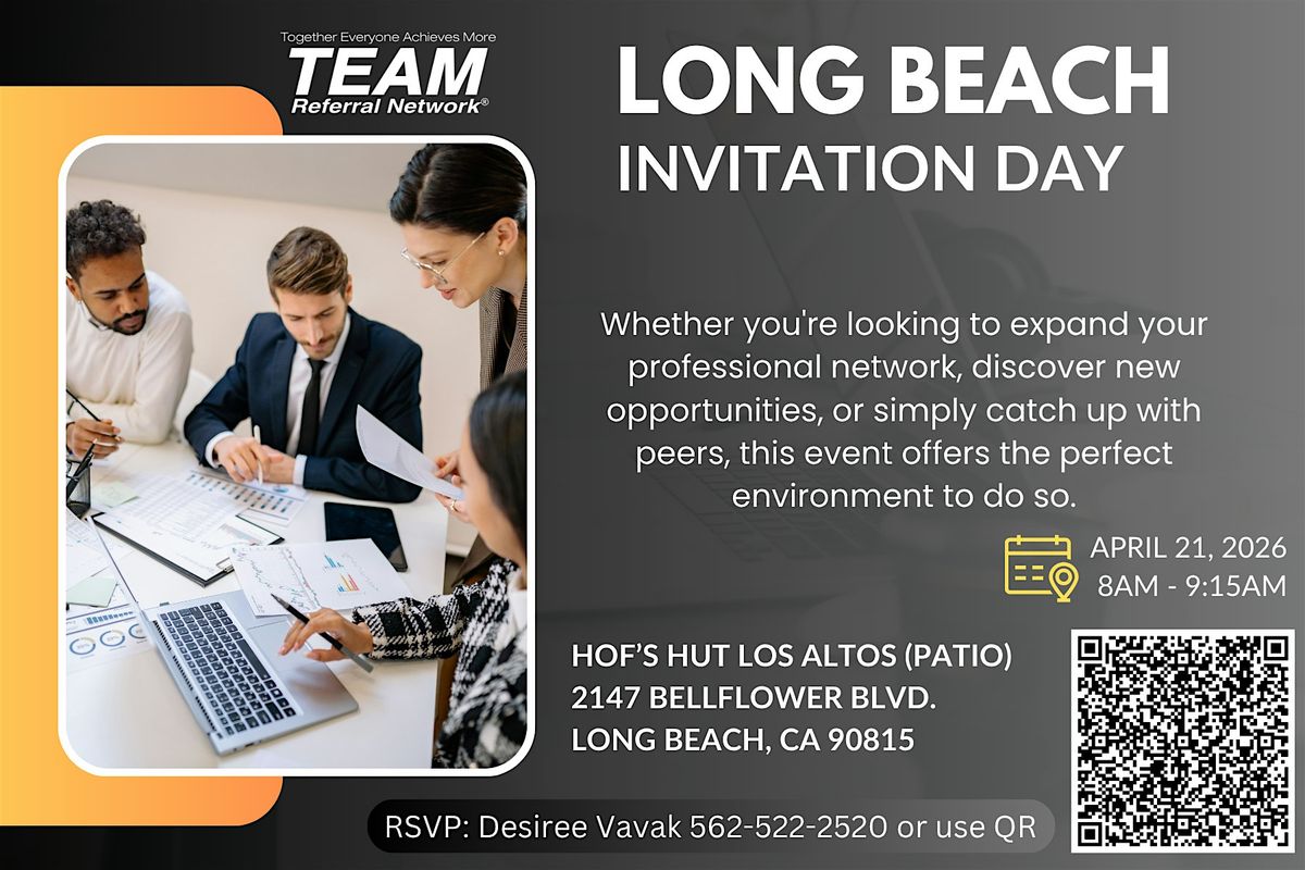 Join the Long Beach chapter of TEAM Referral Network for a special Invitation Day and discover how relationship-based networking helps professionals grow their businesses.
