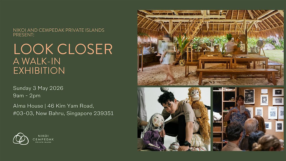 Look Closer is a half-day open festival bringing together an insect watercolour artist, a puppet-making duo from Yogyakarta, and a walk-in exhibition for a morning of making, observing, and encountering the natural world differently.