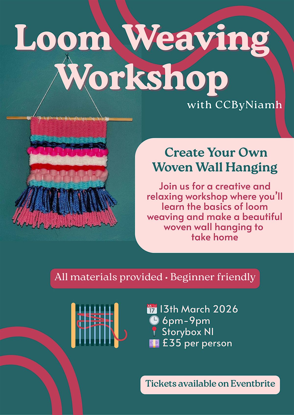 Join us for a creative and relaxing workshop where you’ll learn the basics of loom weaving and make a beautiful wall hanging to take home.About this Event