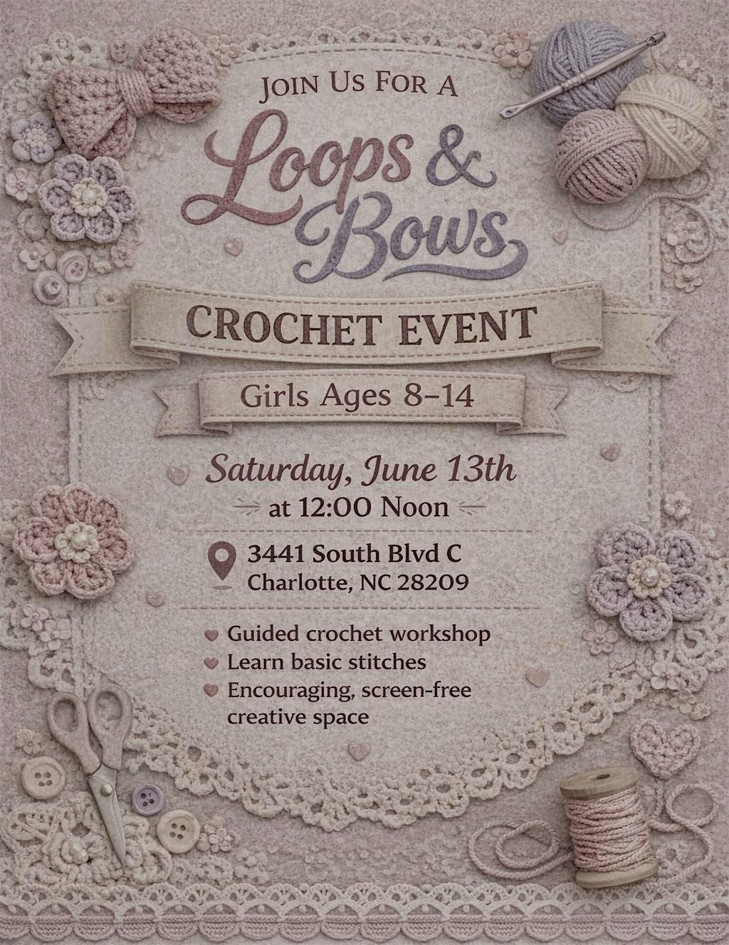 Join us in person for Loops and Bows, where creativity takes center stage! Whether you're a pro or just starting out, this event is your chance to craft beautiful loops and stylish bows with friends. Expect a fun, laid-back vibe perfect for brainstorming cool ideas and trying new techniques. Don’t miss out on hands-on fun and great company — we can’t wait to see you there!