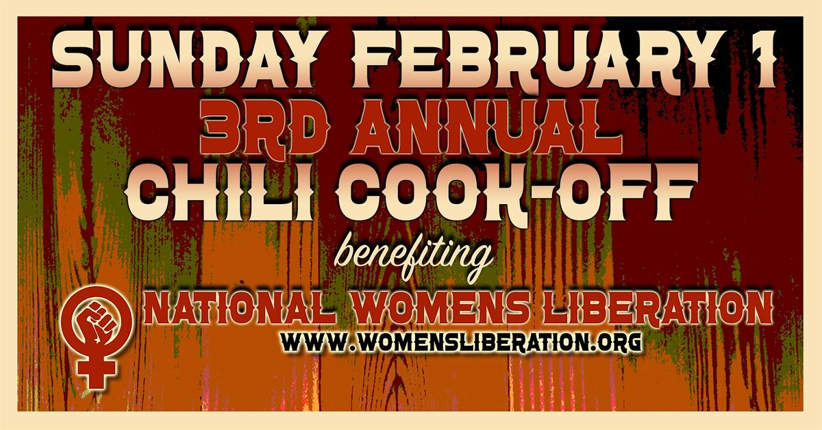 It is time for the 3rd Annual, Loosey's chili cook-off benefitting National Women's Liberation. Bring your best chili, we'll do the rest.