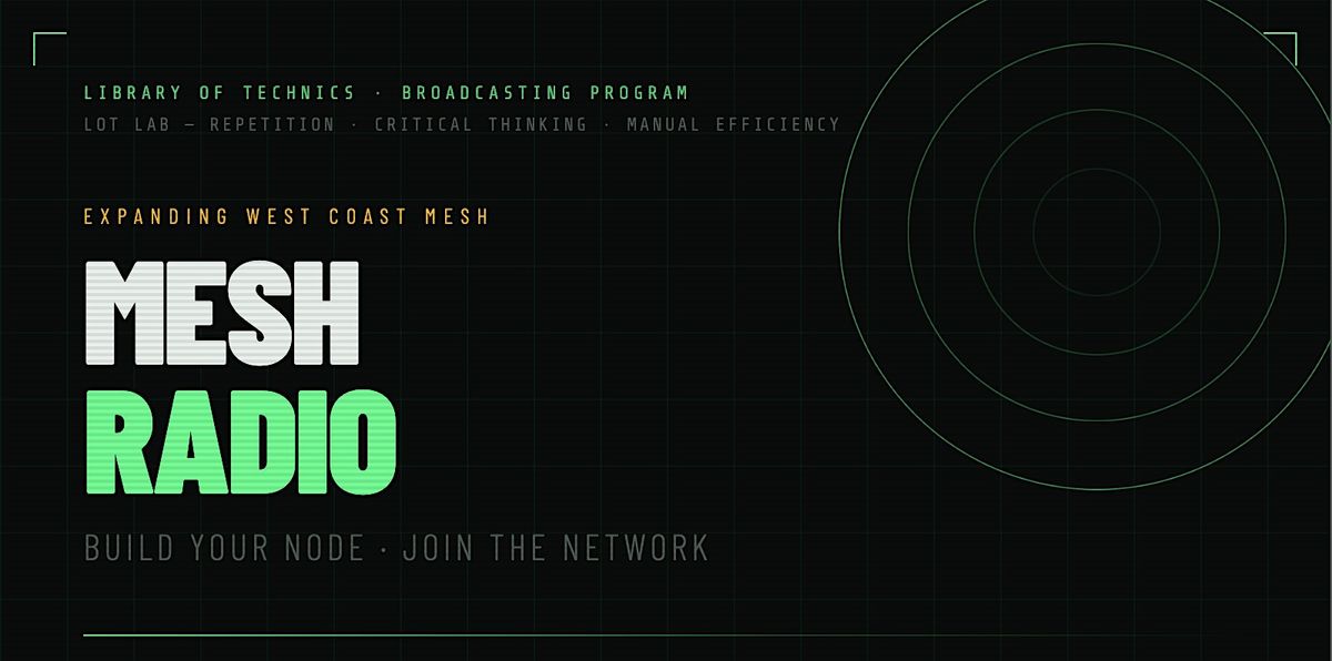 This workshop is part of an ongoing effort to expand West Coast Mesh, a 100% community-driven, open-source communications network growing up and down the Pacific Coast. Every node someone builds and takes home extends the network's reach and resilience. You leave with a working device and a place on the map.