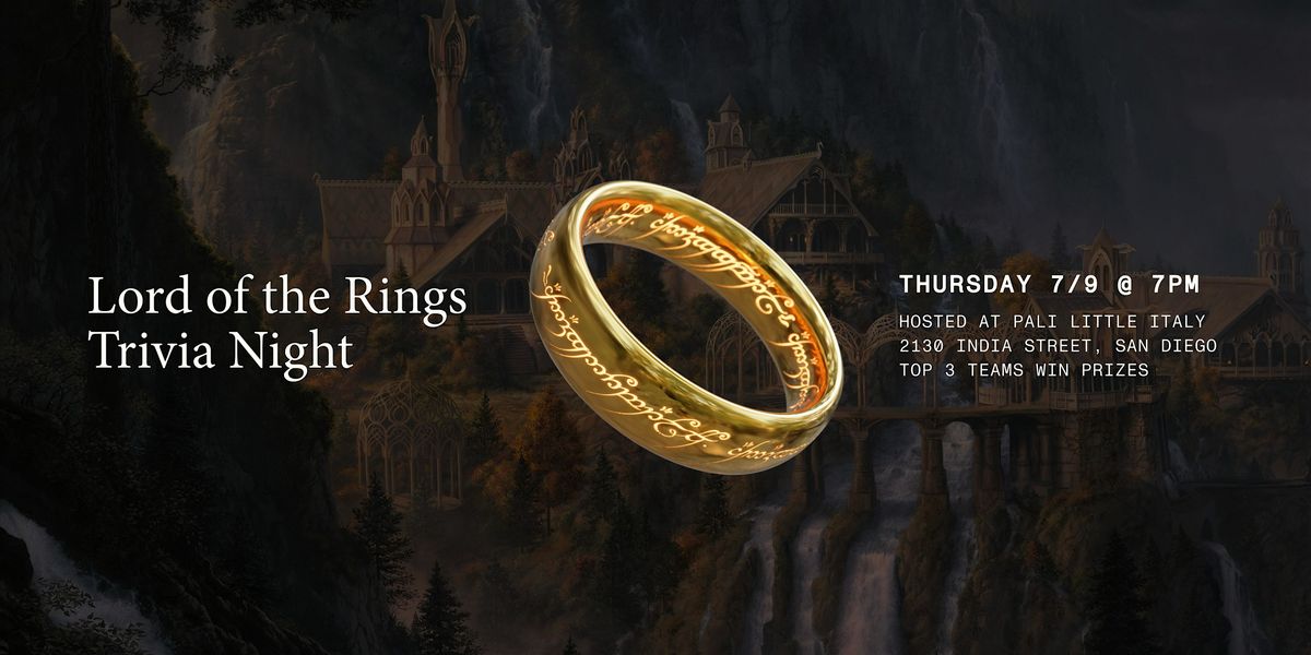 On Thursday, July 9th at 7 PM, journey to Middle-earth for a night of Lord of the Rings movies trivia at Pali Wine Co. This Lord of the Rings–themed trivia night covers the entire film trilogy—from The Fellowship of the Ring to The Two Towers and The Return of the King.