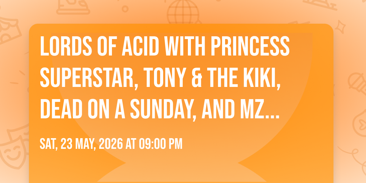 📍 Location: 30.2409, -97.7288✨ Enter a world of endless possibilities at Lords Of Acid with Princess Superstar, Tony & The Kiki, Dead On A Sunday, and Mz Neon, where every moment tells a story! 🏛️ The stunning Come and Take It Live in vibrant Austin, TX transforms into a realm of wonder on May 23rd, 2026 at 09:00 PM. 🌟 They have crafted an experience that goes beyond the ordinary, combining elements of surprise, delight, and pure entertainment. Every detail has been thoughtfully considered to ensure your journey with us is nothing short of extraordinary. 🎯 Join fellow adventure seekers and memory makers in this celebration of imagination and innovation. 🎊 Reserve your spot today and be part of something truly special!