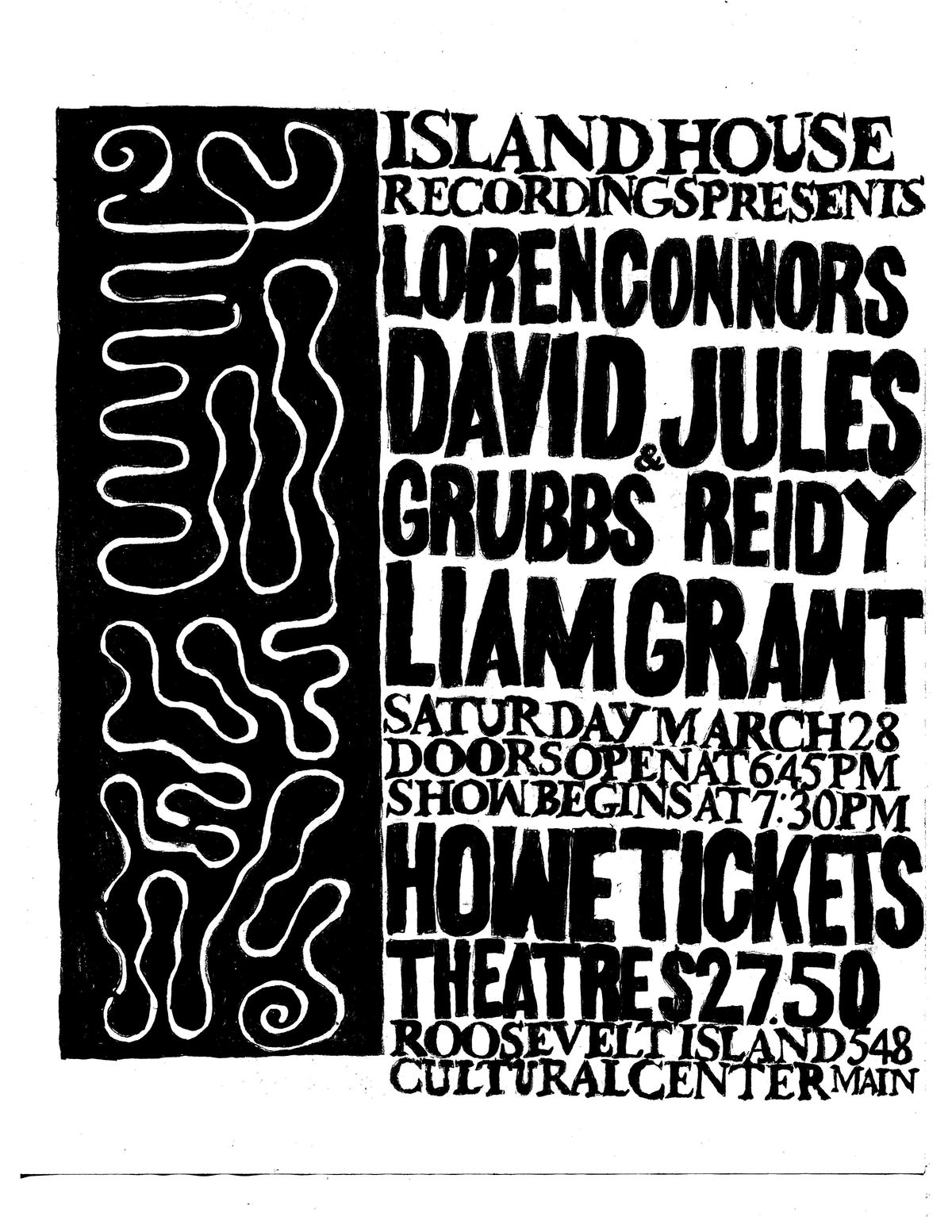 Please join us for an amazing evening of outsider music with Loren Connors, David Grubbs & Jules Reidy, and Liam Grant