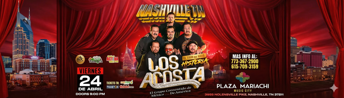 Don't miss LOS ACOSTA happening at Plaza Mariachi , Nashville, TN, United States on 2026-04-24T21:00:00-06:00. A great evening with good music and a laid-back atmosphere awaits you. Invite your friends for a night out! **Event Details:** * **Location:** Plaza Mariachi , Nashville, TN, United States Register now to secure your spot at this landmark event. #LOSACOSTA #event #exciting #NashvilleEvents #TNEvents