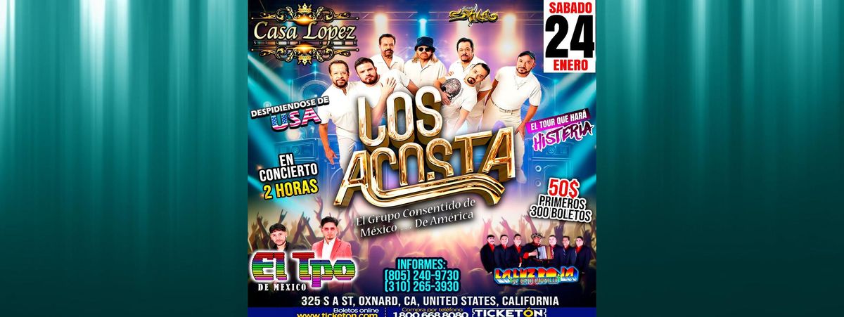 Don't miss LOS ACOSTA @ CASA LOPEZ happening at Casa Lopez, Oxnard, CA, United States on 2026-01-24T20:00:00-08:00. A great evening with good music and a laid-back atmosphere awaits you. Invite your friends for a night out! **Event Details:** * **Location:** Casa Lopez, Oxnard, CA, United States Claim your ticket to be at the forefront of exciting innovation. #LOSACOSTA@CASALOPEZ #event #exciting #OxnardEvents #CAEvents