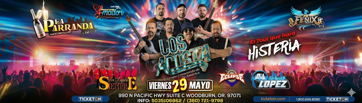 Don't miss 'LOS ACOSTA EN WOODBURN ', the premier exciting event happening at La Parranda Night Club, Woodburn, OR, United States. This event showcases the best talent and expertise in the field. Immerse yourself in a world of opportunities and cutting-edge ideas. Reserve your place now for an unparalleled exciting experience. #LOSACOSTAENWOODBURN #event #exciting #WoodburnEvents #OREvents