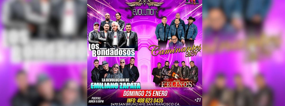 Join us for 'LOS BONDADOSOS, LOS CAMINANTES Y MAS', a groundbreaking exciting event at Evolution Night Club San Francisco, San Francisco, CA, United States. This event is a cornerstone of innovation in the industry. Engage with experts, explore new horizons, and elevate your understanding of the exciting landscape. Book your attendance today and be part of something extraordinary. #LOSBONDADOSOS,LOSCAMINANTESYMAS #event #exciting #San FranciscoEvents #CAEvents