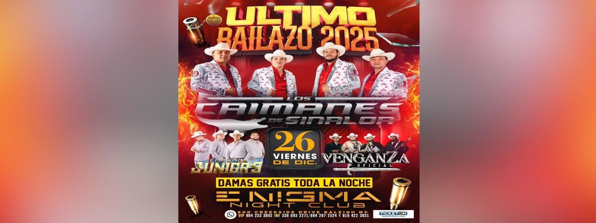 **Attend LOS CAIMANES DE SINALOA, LOS DOS JUNIORS & MAS at Enigma Night Club, Raleigh, NC, United States** Join us for LOS CAIMANES DE SINALOA, LOS DOS JUNIORS & MAS. It's going to be a fun and relaxed event with great music and good company. A perfect way to spend your evening. **Event Details:** * **Location:** Enigma Night Club, Raleigh, NC, United States Reserve your place now for an unparalleled exciting experience. #LOSCAIMANESDESINALOA,LOSDOSJUNIORS&MAS #event #exciting #RaleighEvents #NCEvents