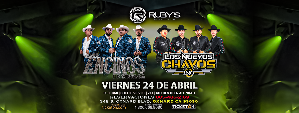 Join us for 'LOS ENCINOS DE SINALOA Y LOS NUEVOS CHAVOS INC', a groundbreaking exciting event at Ruby`s Night Club, Oxnard, CA, United States. This event is a cornerstone of innovation in the industry. Engage with experts, explore new horizons, and elevate your understanding of the exciting landscape. Claim your ticket to be at the forefront of exciting innovation. #LOSENCINOSDESINALOAYLOSNUEVOSCHAVOSINC #event #exciting #OxnardEvents #CAEvents