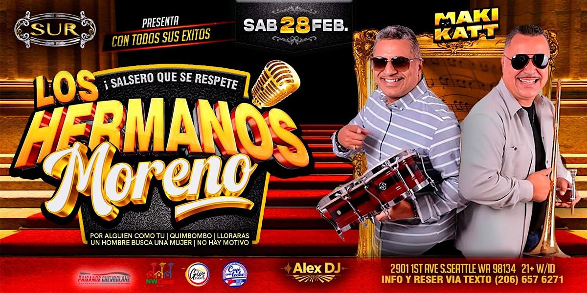 Este sábado 28 de febrero, Club Sur presenta en vivo a Los Hermanos Moreno, interpretando todos sus grandes éxitos que han marcado generaciones de la salsa.