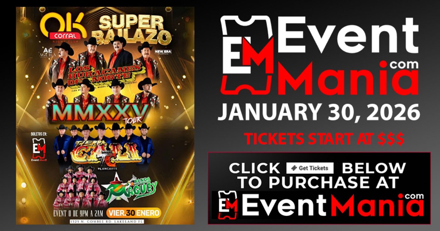 Compra tus boletos aqui: https://eventmania.com/events/los-huracanes-del-norte-y-mas-lakeland-fl-2026-01-30/uTS3/seat