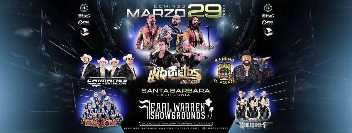Join us for 'LOS INQUIETOS DEL NORTE, LOS CAIMANES DE SINALOA & MAS', a groundbreaking exciting event at Earl Warren Showgrounds, Santa Barbara, CA, United States. This event is a cornerstone of innovation in the industry. Engage with experts, explore new horizons, and elevate your understanding of the exciting landscape. Claim your ticket to be at the forefront of exciting innovation. #LOSINQUIETOSDELNORTE,LOSCAIMANESDESINALOA&MAS #event #exciting #Santa BarbaraEvents #CAEvents