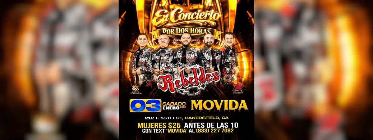 Don't miss 'LOS NUEVOS REBELDES ', the premier exciting event happening at La Movida Night Club de Bakersfield, Bakersfield, CA, United States. This event showcases the best talent and expertise in the field. Immerse yourself in a world of opportunities and cutting-edge ideas. Claim your ticket to be at the forefront of exciting innovation. #LOSNUEVOSREBELDES #event #exciting #BakersfieldEvents #CAEvents