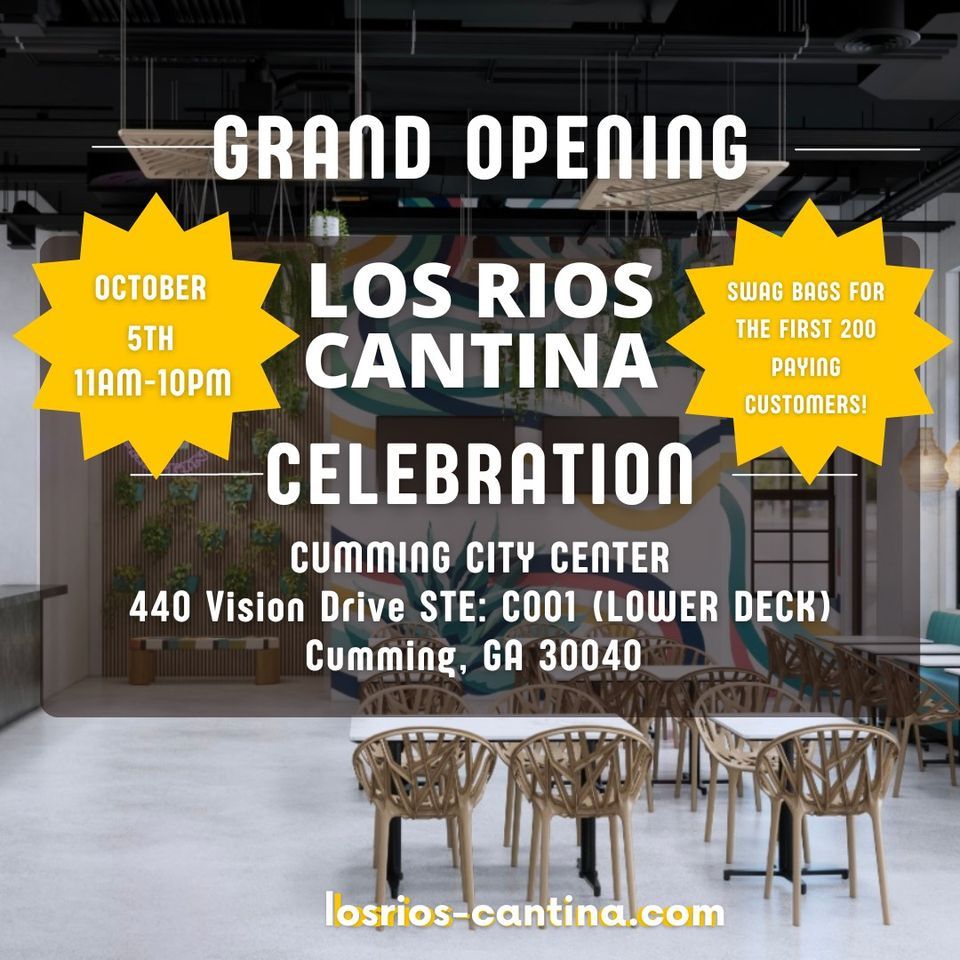 ??Mark your calendars for the GRAND OPENING of Los Rios Cantina on October 5th from 11 AM-10PM! This is not just another opening; it's a grand celebration you certainly don't want to miss.We have a lot in store for you. The first 200 paying customers will get an exclusive Swag bag as a token of our appreciation. That's not all - we're also giving away kids' hoodies on a first-come, first-serve basis.