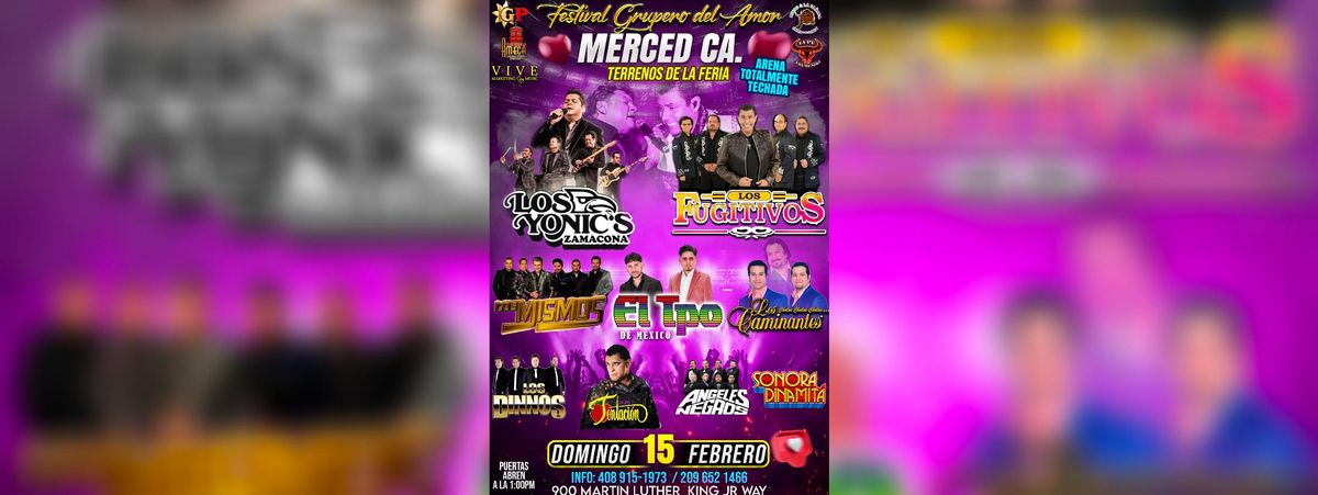 Don't miss LOS YONIC'S ZAMACONA, LOS FUGITIVOS happening at Merced County Fair, Merced, CA, United States on 2026-02-15T13:00:00-08:00. A great evening with good music and a laid-back atmosphere awaits you. Invite your friends for a night out! **Event Details:** * **Location:** Merced County Fair, Merced, CA, United States Book your attendance today and be part of something extraordinary. #LOSYONIC'SZAMACONA,LOSFUGITIVOS #event #exciting #MercedEvents #CAEvents