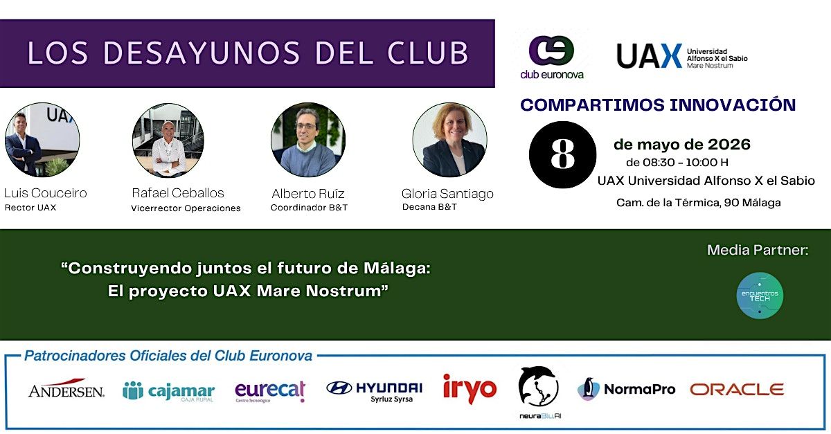 El próximo 8 de mayo de 2026, el Club Euronova celebra una nueva edición de Los Desayunos del Club en colaboración con UAX Universidad Alfonso X el Sabio Mare Nostrum.