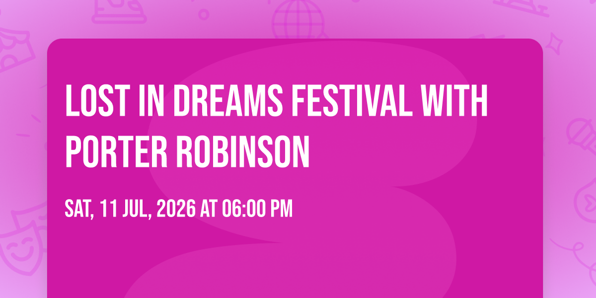 📍 Location: 34.0719, -118.227🌟 Journey into wonder at Lost In Dreams Festival with Porter Robinson, where extraordinary experiences await around every corner! 🏛️ Set against the backdrop of Los Angeles State Historic Park in dynamic Los Angeles, CA, this event promises to exceed all expectations. 📅 Join us on July 11th, 2026 at 06:00 PM for a celebration that combines innovation, entertainment, and community spirit in perfect harmony. ✨ There will be an atmosphere where memories are made and stories come alive, ensuring every guest experiences something truly remarkable. 🎊 This is more than just an event; it's a journey into the extraordinary!