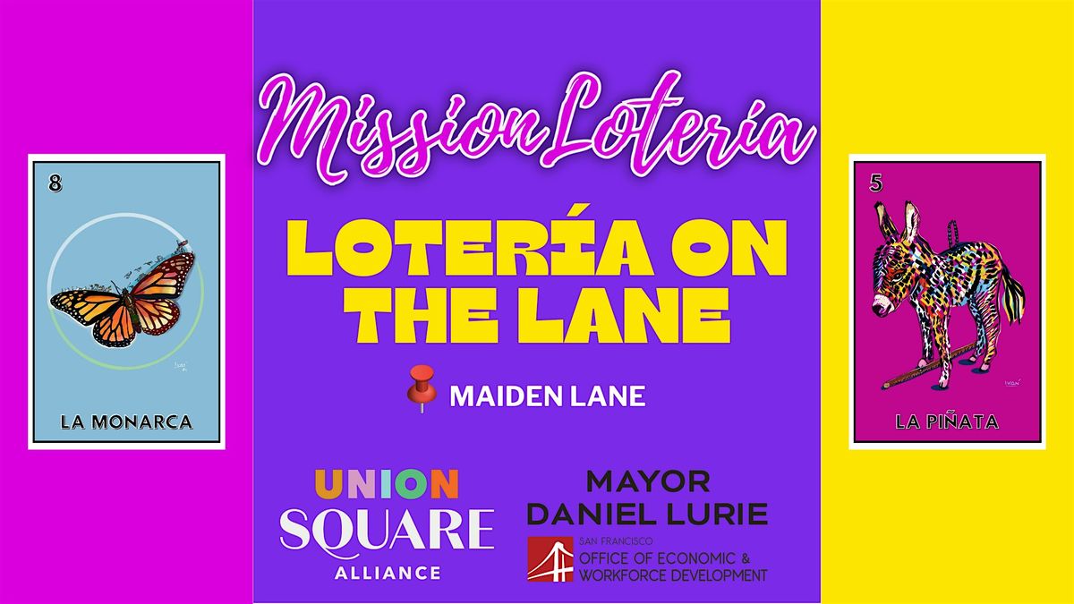 Ready for a fun day out in Union Square? Lotería on the Lane is the perfect way to spice up your weekend! Join us in person for a lively game of Mission Lotería – a classic Mexican bingo with a local twist that’s all about good luck, laughs, and good vibes. Bring your friends, grab some snacks, and get ready to shout "¡Lotería!" while having a blast.