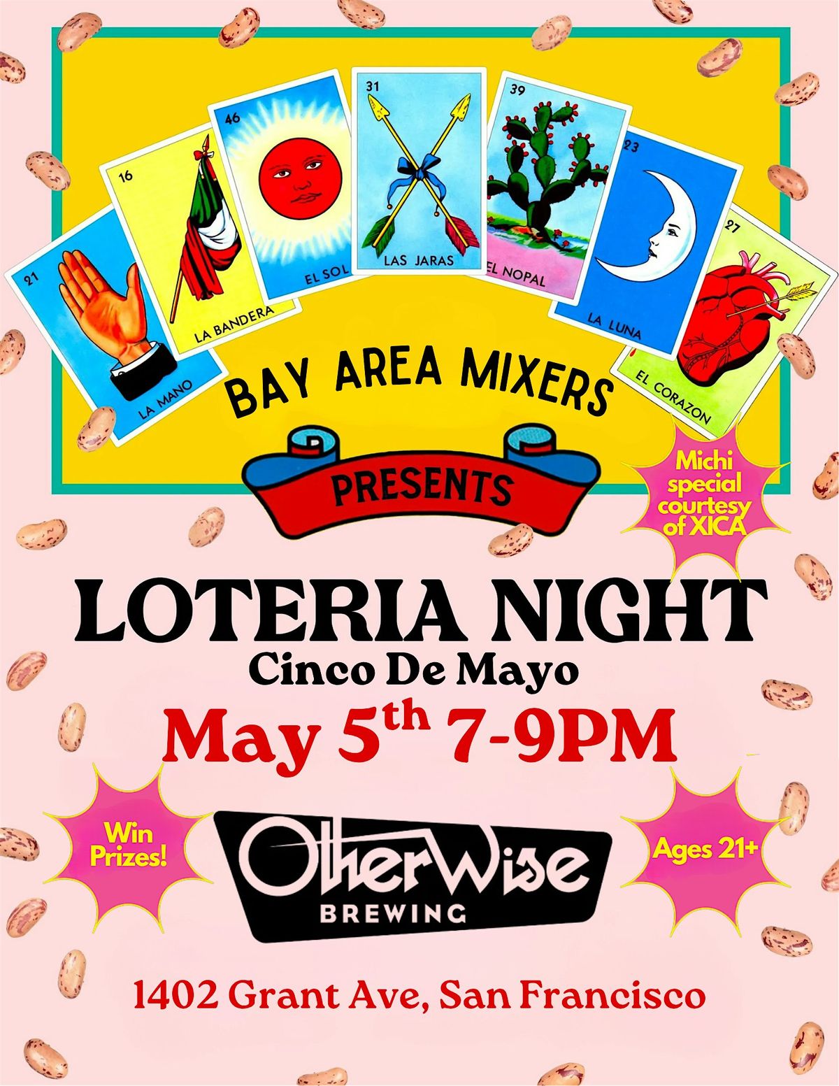 Get ready for a fun Cinco de Mayo celebration at Otherwise Brewing in San Francisco! Join us on Tuesday, May 5th at 7:00 PM for a lively night of Loteria games with prizes, gluten-free drinks, and awesome vibes. This event is for ages 21 and up only, so bring your friends and let’s make it a night to remember!
