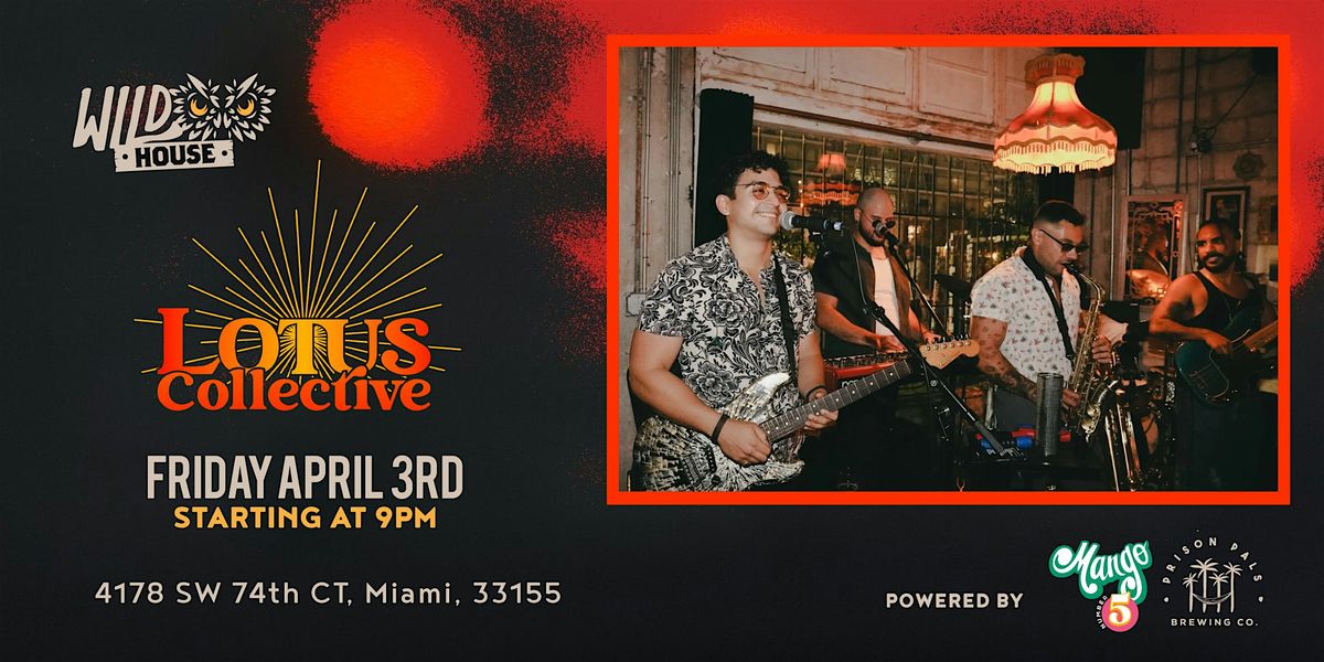 Join us for a special live performance by Lotus Collective, bringing their unique blend of Latin soul, funk, and grooveto Miami.