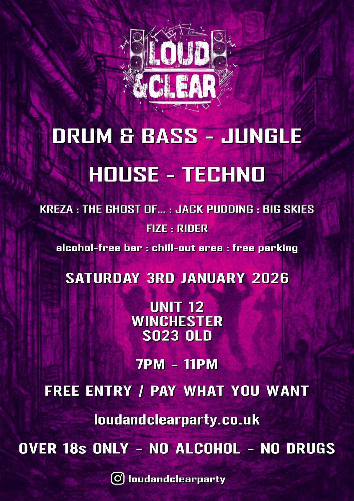 Plus we'll be welcoming back BIG SKIES (Techno) & JACK PUDDING (House) to warm us up and give our sound system a full workout.