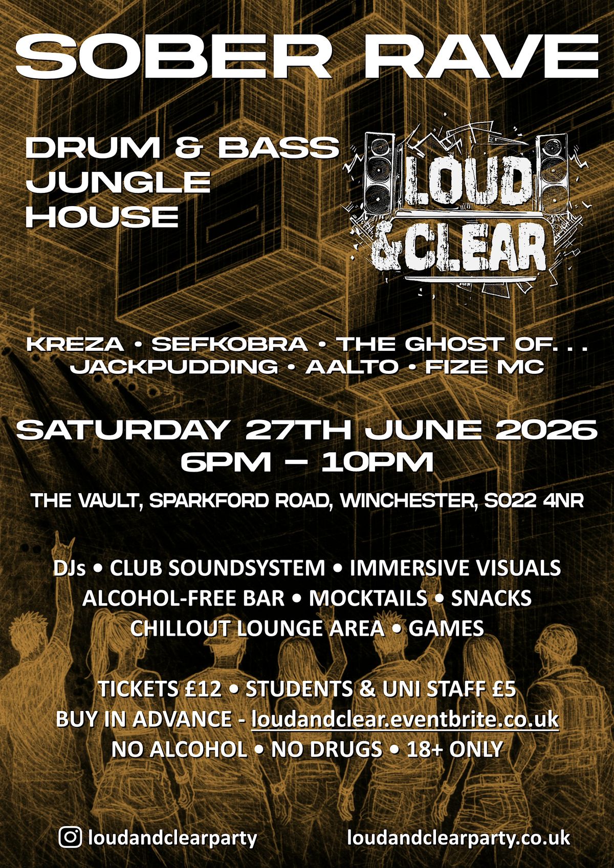 Join us at our next Loud & Clear night - an awesome sober clubbing experience you wont forget! We've got an exciting new nightclub venue for our sober raves in Winchester, so come on over for the next one on Saturday 27th June from 6pm - 10pm at The Vault on the university grounds. We can't wait to see new and returning ravers in the club! Check out what's in store...