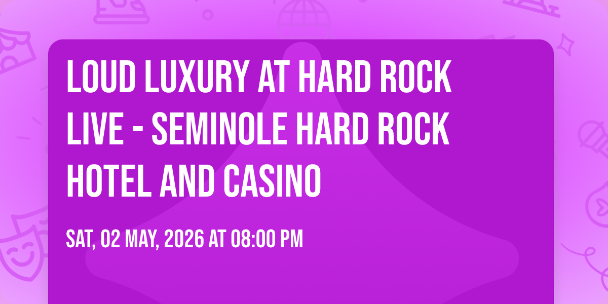 🌟 Step into a world of wonder at Loud Luxury at Hard Rock Live - Seminole Hard Rock Hotel and Casino, where extraordinary moments await! 🏛️ Located at Hard Rock Live - Seminole Hard Rock Hotel and Casino in dynamic Hollywood, FL, this event will become the talk of the town. 📅 Join us on May 2nd, 2026 at 08:00 PM for a celebration that defies the ordinary. ✨ This curated experience brings together the best of entertainment, culture, and community spirit. Every detail has been thoughtfully planned to ensure an unforgettable experience for all our guests. 🎯 Take advantage of this opportunity to be part of something special. 🎊 Early registration is recommended as space is limited!