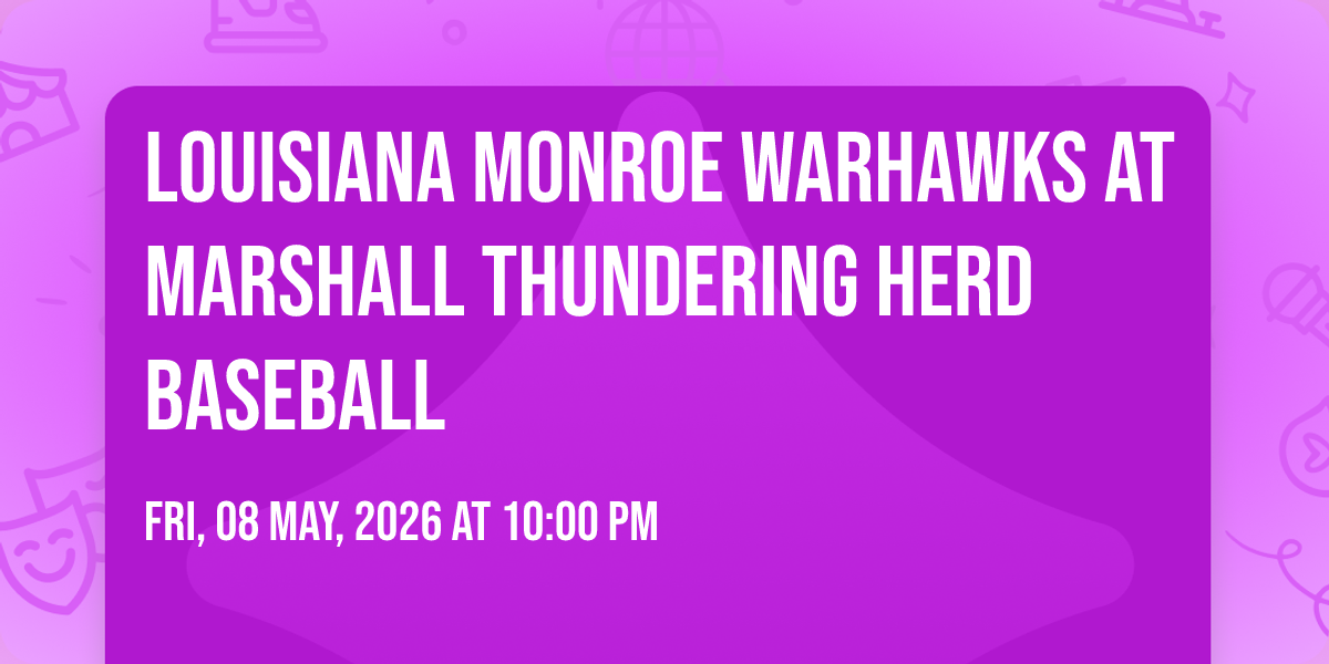 📍 Location: 38.4281, -82.4205🎉 Prepare to be amazed at Louisiana Monroe Warhawks at Marshall Thundering Herd Baseball, the most anticipated gathering of the season! 🌟 Set against the stunning backdrop of Jack Cook Field in vibrant Huntington, WV, this event promises to redefine your expectations. 📅 Mark your calendars for May 10th, 2026 at 05:00 PM and get ready to immerse yourself in an atmosphere of wonder and excitement. ✨ From the moment you arrive, you'll be transported into a world where memories are made and stories come alive. They have crafted an experience that perfectly harmonizes entertainment, innovation, and community spirit. 🌈 Join us as we create moments that will be discussed for years!