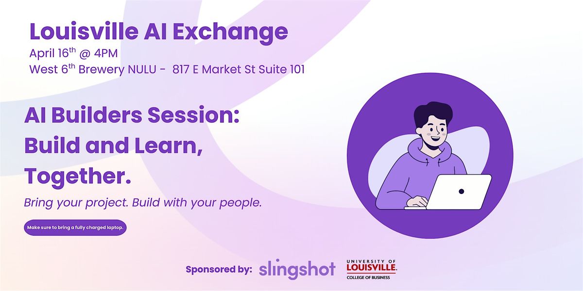 April's Louisville AI Exchange is our first-ever Builders Session: an open, hands-on evening for anyone working on an AI project or thinking about starting one. Bring whatever you're building or stuck on, and dig in alongside a room full of peers doing the same. Swap tools, share what's working, and bounce ideas off people who get it.