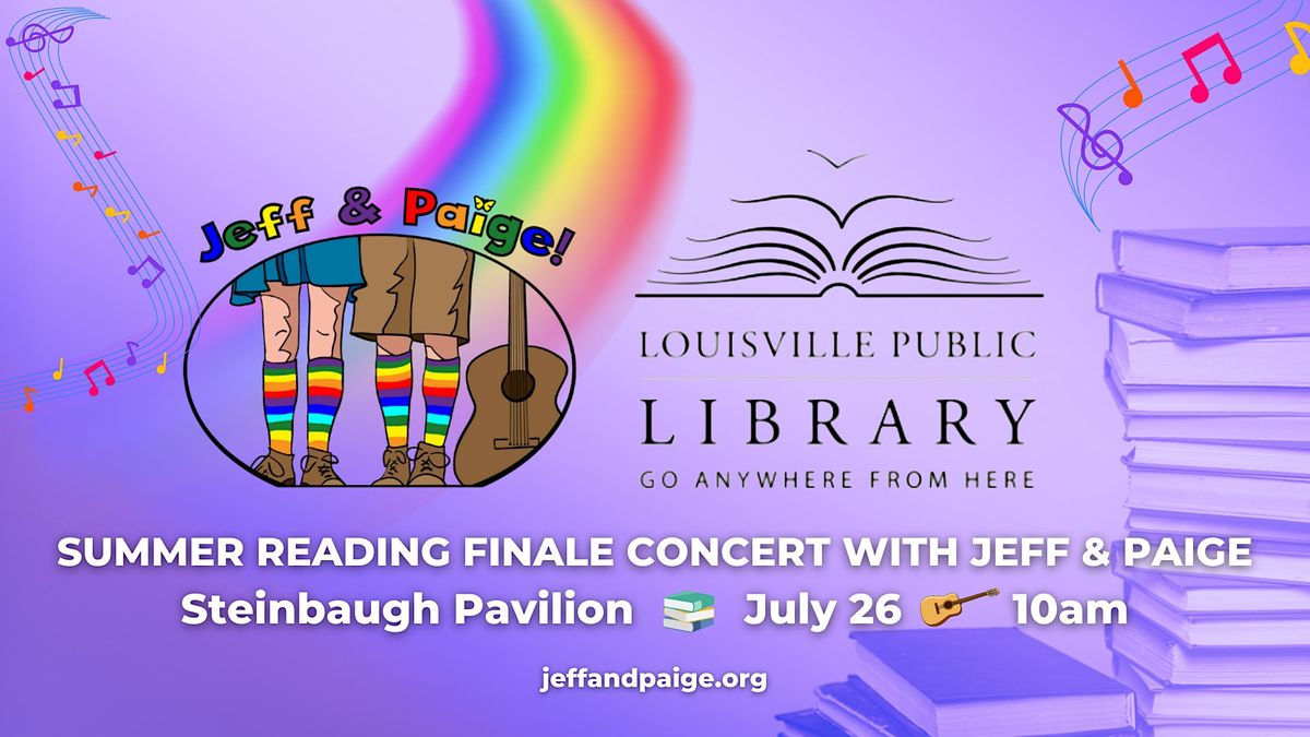 Jeff & Paige perform a free, outdoor, kids' concert to celebrate the finale of the Louisville, CO Summer Reading Program. Join us at one of our all-time favorite venues for an interactive, science and nature-themed kids' concert rife with educational skits, original music, quick costume changes and loads of audience/kid participation!