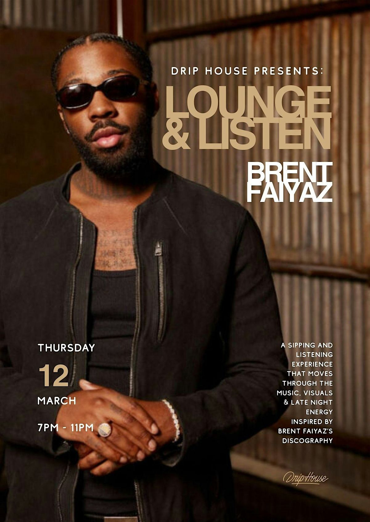 The first edition of Lounge & Listen is dedicated to Brent Faiyaz, his voice, his vulnerability, and the raw emotional tension that’s defined a new era of R&B. For one night, we’re transforming the cocktail bar into a full sensory dive through his catalog. From the intimacy of Sonder Son and the emotional haze of Lost, to the defiance of Fuck the Worldand the cinematic weight of Wasteland and Larger Than Life, the music guides the room with no skips, no distractions. Just intention.