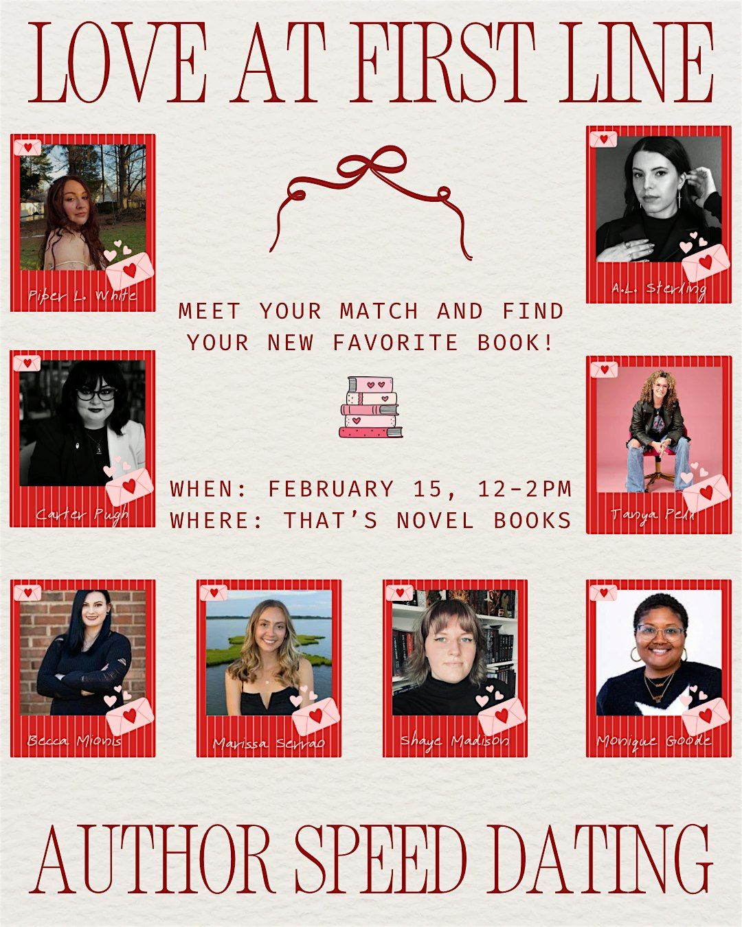 Meet eight local authors and hear about their books in this fun, speed-dating style event at That’s Novel Books! We will have a handful of authors with romance, fantasy, thriller and general fiction novels set up at our store during the event. You’ll sit with each author for 3 minutes to hear about their book and ask them questions. After 3 minutes, you’ll move on to the next author! Books from each author will be available to purchase. This event is free to attend!