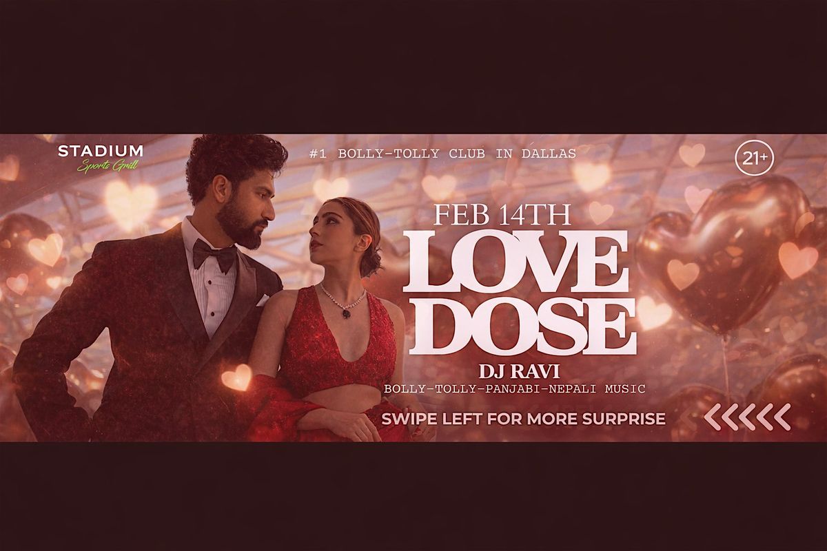 LOVE DOSE is a premium Bollywood–Tollywood club night specially curated for couples, singles, and party lovers across Dallas–Fort Worth.