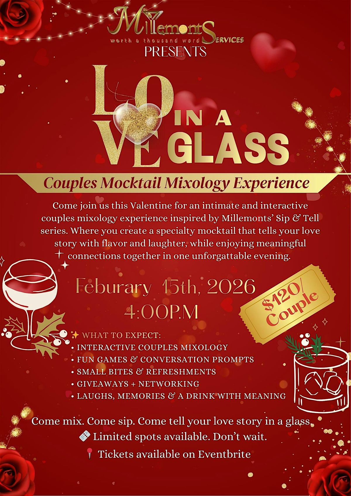 This interactive event invites couples to create a custom mocktail inspired by their partner’s personality, energy, and love language. Through guided prompts, conversation, laughter, and creativity, you’ll mix a drink that represents the one you love — and sip a story worth remembering.