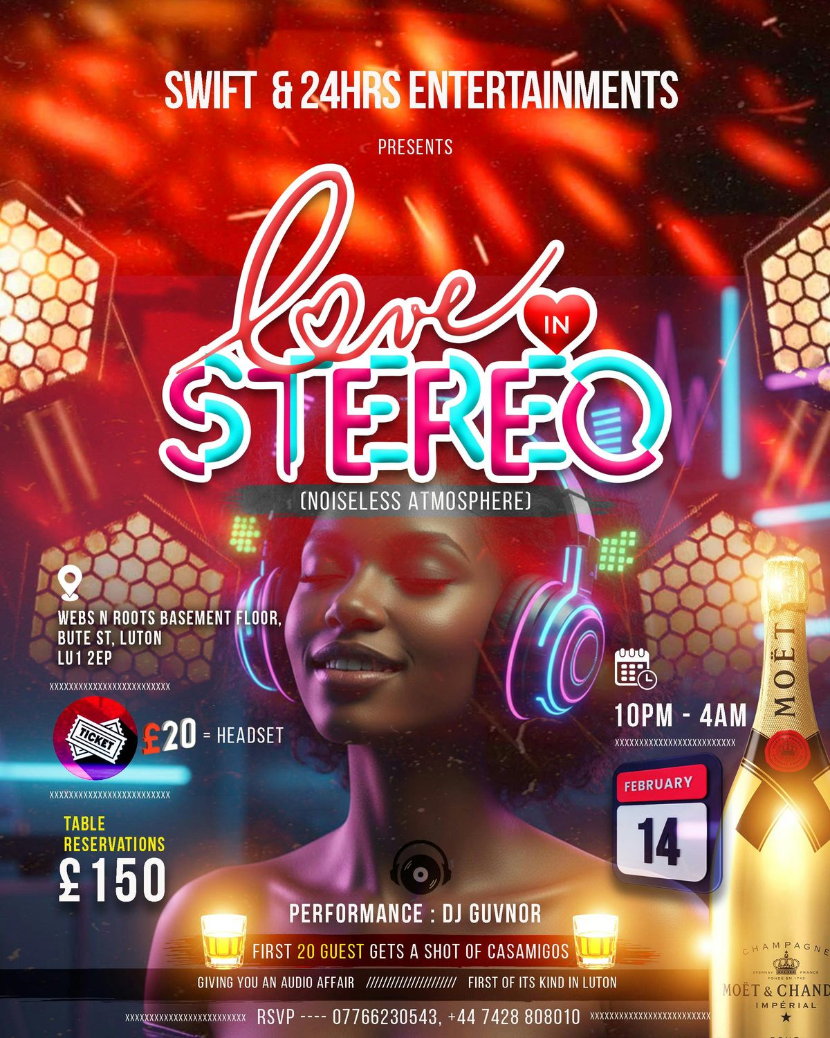 Love in Stereo is a Valentine’s Day noiseless party experience where music, vibes, and connection take center stage. Guests tune in through wireless headsets for an immersive sound experience, creating an intimate yet electric atmosphere.