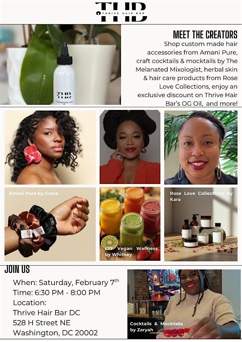 Thrive Hair Bar DC is excited to host our first-ever Pop-Up Shop, and we’re making it a true celebration of love, creativity, and community. Join us as we spotlight Black, Latina, and women-owned brands, including incredible products created by members of the Thrive Hair Bar team.