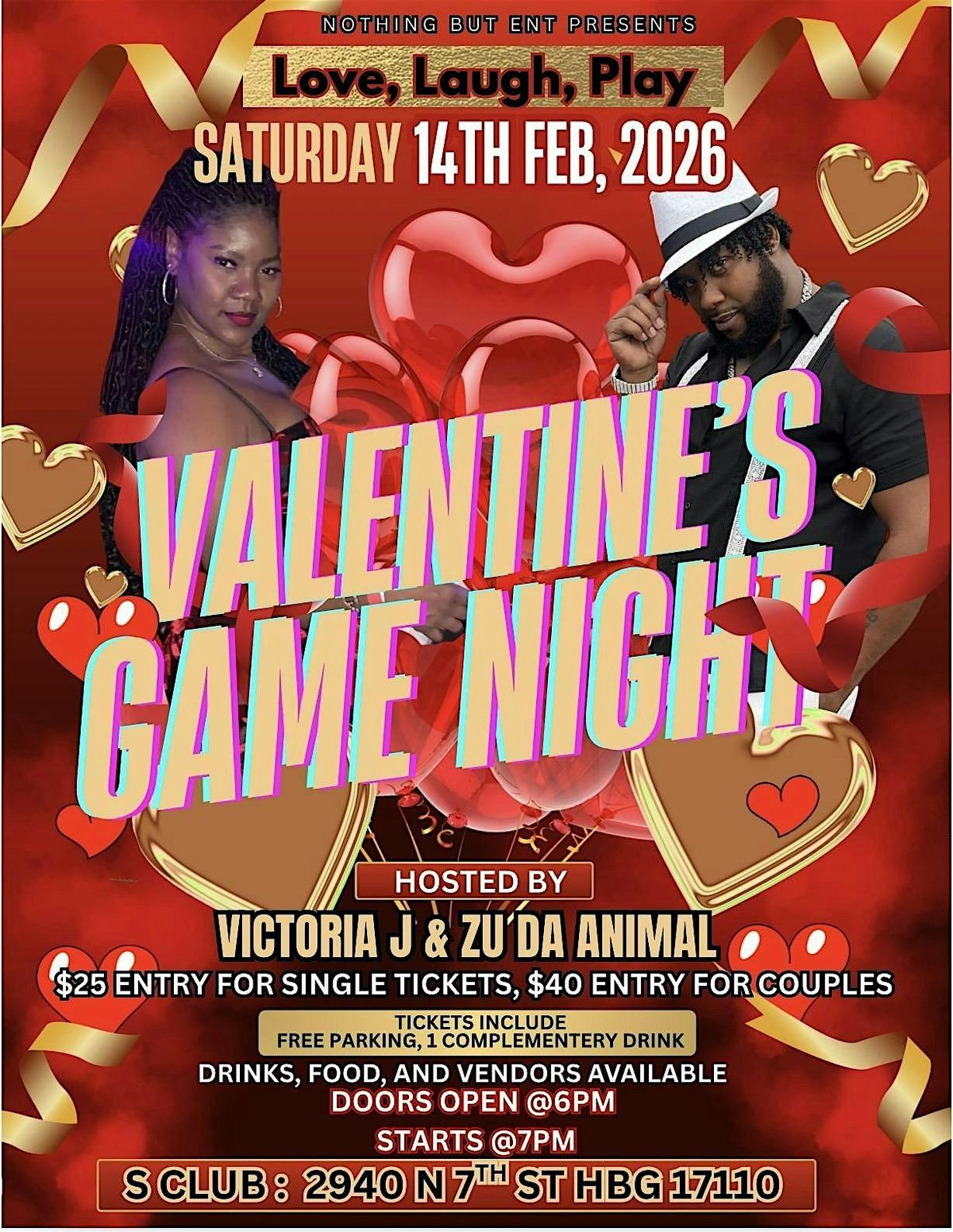 Guests will enjoy a variety of icebreaker and party games, from classic favorites to Valentine-themed challenges, all with exciting prizes up for grabs throughout the night. Between games, mix and mingle while enjoying curated food and drink options that keep the energy high and the vibes festive.