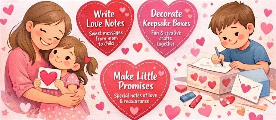 Love Notes & Little Promises is a heart-centered Mommy & Me workshop designed for mothers and children. This interactive experience creates intentional time for connection through creativity, words of love, and shared presence. Mothers will write meaningful love notes and simple promises for their children, while children decorate and create a keepsake they can treasure forever. This workshop encourages emotional bonding in a fun, relaxed, and judgment-free environment and fun-filled surprises for kids.