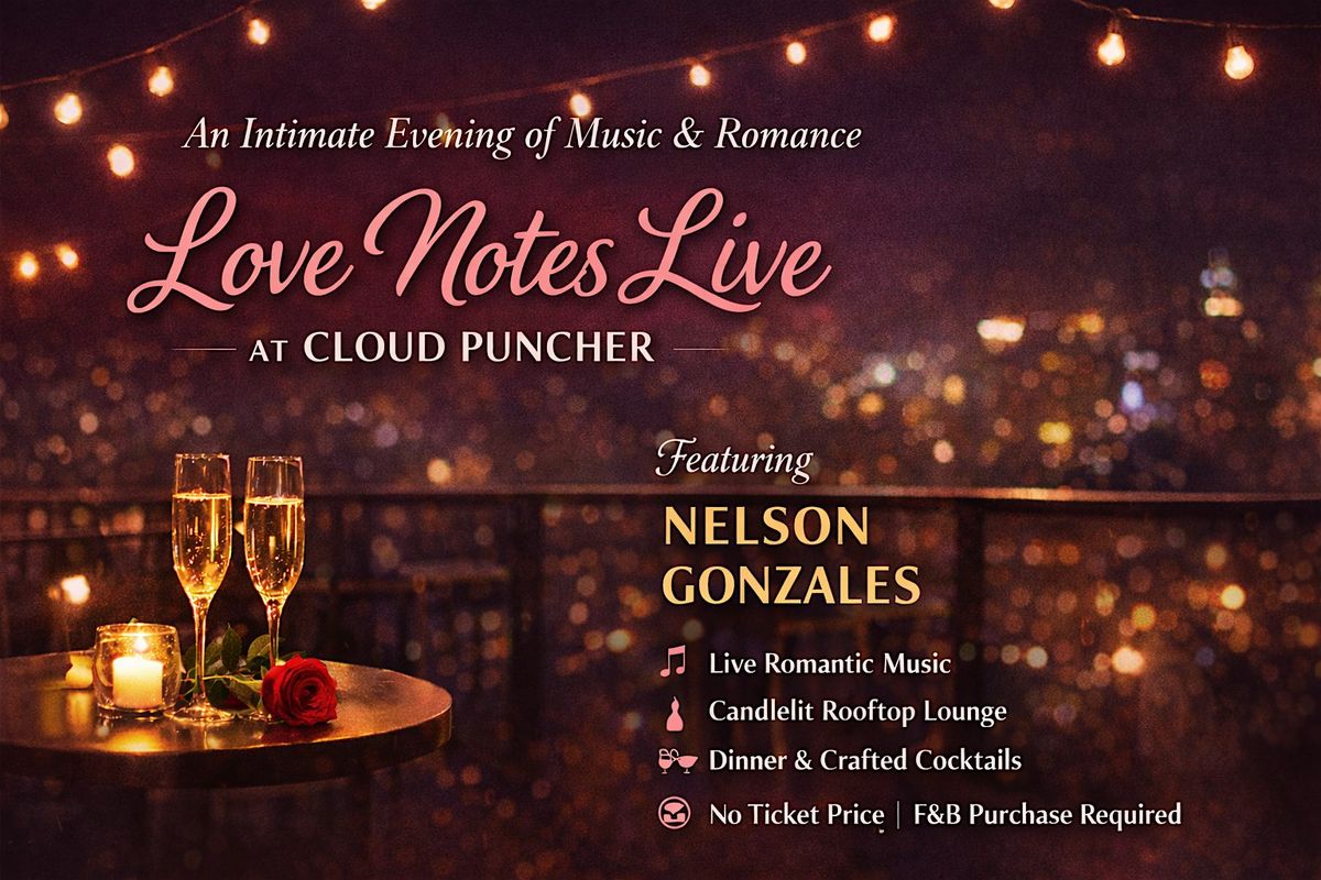 Unwind at Love Notes Live at Cloud Puncher, an intimate evening lounge experience set to live romantic music by Nelson Gonzales. Designed for connection and ambiance, this gathering pairs candlelit atmosphere with craft cocktails and chef-driven dining in a cozy, elevated rooftop setting.