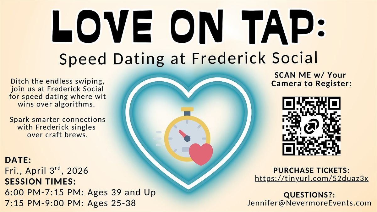 Ditch the endless swiping, join Nevermore Weddings and Events at Frederick Social for speed dating where wit wins over algorithms. Spark smarter connections with Frederick singles.