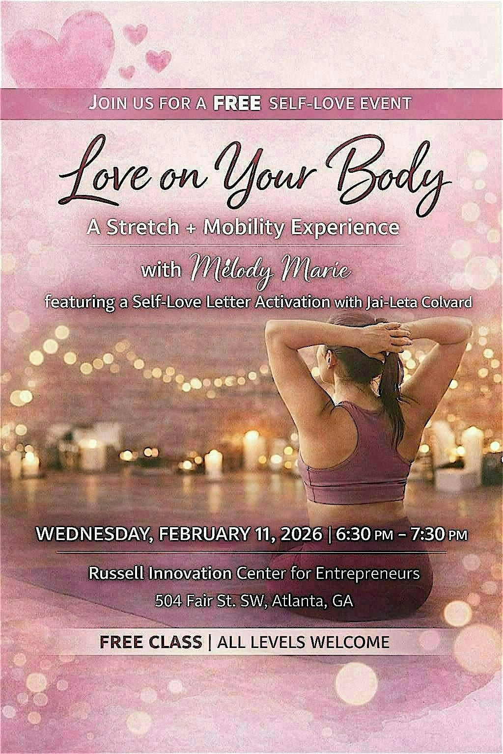 Love on Your Body is a guided stretch and mobility class designed to help you release tension, improve flexibility, and reconnect with your body in a powerful, intentional way. This is not a high-intensity workout — it’s a restorative, feel-good movement experience rooted in self-care, recovery, and overall wellness.