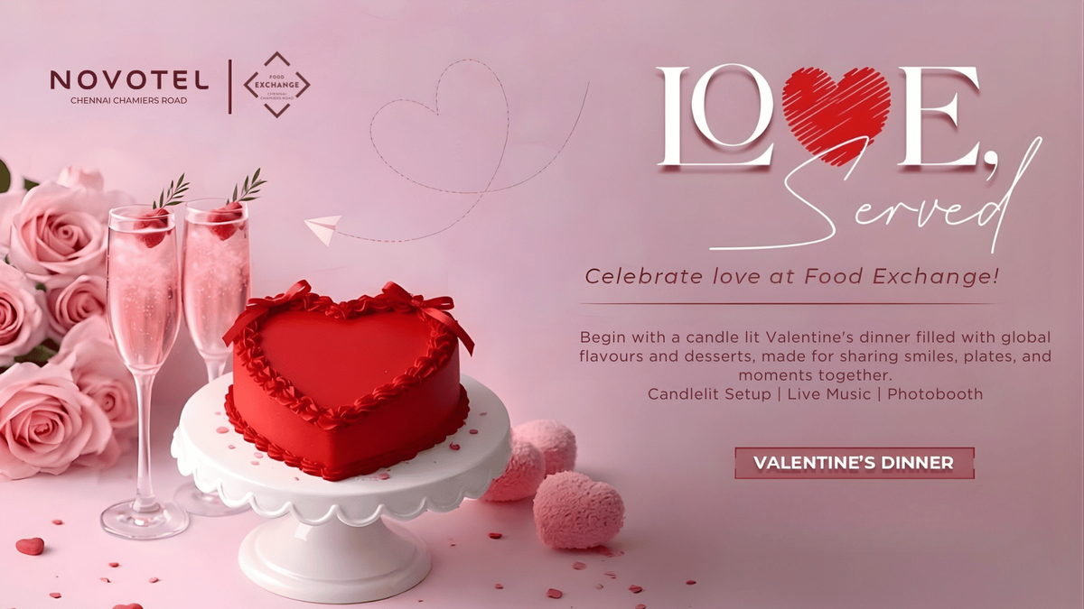 Celebrate love in the most heart-warming way at Love, Served — a specially curated Valentine’s Dinner at Food Exchange. Set in a romantic candle-lit ambience, this intimate evening brings together global flavours, indulgent desserts, and moments designed to be shared.Begin your Valentine’s celebration with a thoughtfully crafted dinner experience, complemented by live music, a charming photobooth, and an atmosphere that sets the perfect tone for togetherness. Whether it’s your first Valentine or one of many, this evening promises warmth, flavour, and memories worth holding on to.Because when love is served right, every moment feels special. 💕